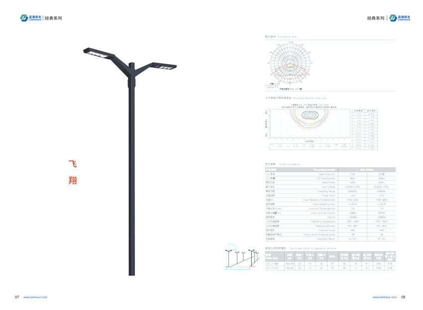 1、路燈總高10米; 2、主燈功率為18W,輔燈功率為90W; 3、主桿采用150*200矩管構造而成,燈臂采用不銹鋼激光雕刻而成; 4、光源采用飛利浦芯片,光效最高可達到160LUX; 5、驅動電源為飛利浦、茂碩、明緯等三大品牌之一。