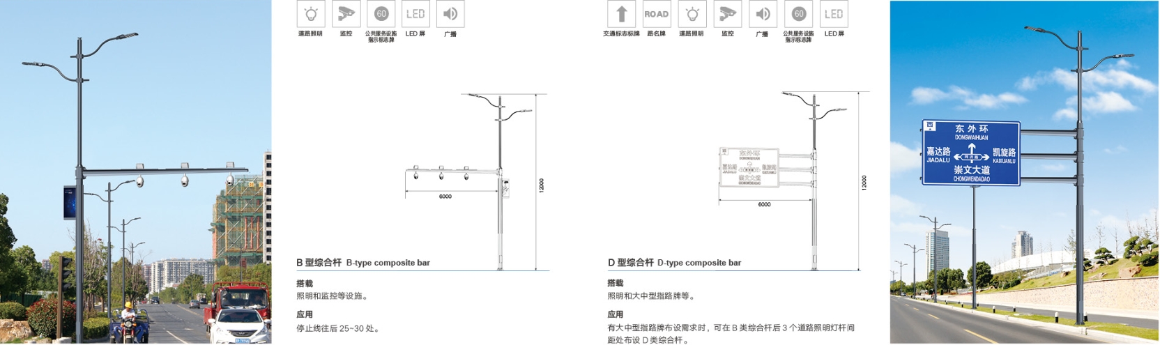 3. 布局形式:采用多桿合一的布局形式,將不同功能的桿件進行組合,如路燈桿、交通信號桿、監(jiān)控桿等,以實現資源的共享和優(yōu)化。