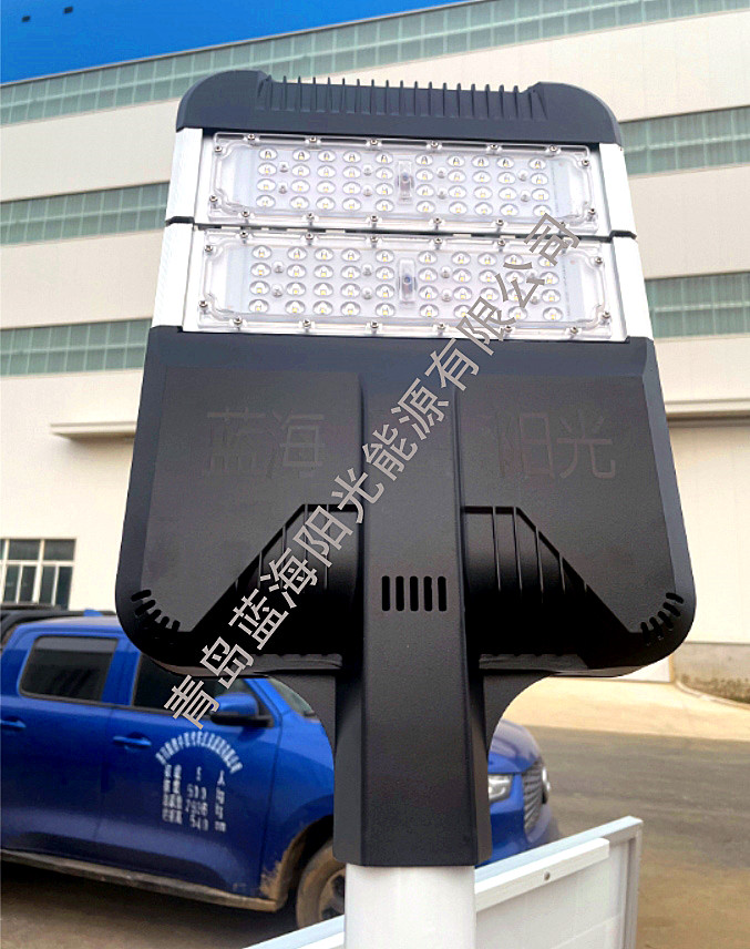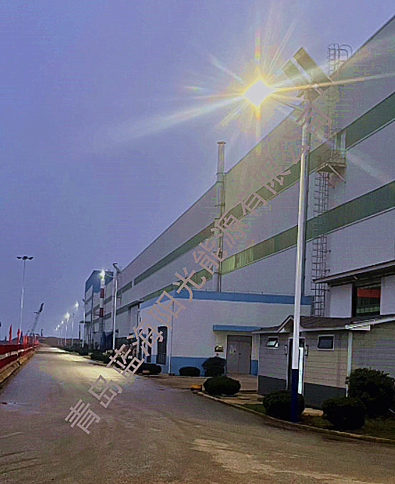 項目地址:由青島藍海陽光能源有限公司設計、生產、安裝的青島市即墨區田橫街道某央企太陽能LED路燈順得交付使用,該企業為滿足青島地區風力發電提供高科技產品支持的國家重點新建企業,為此廠區亮化要求各種參數高,產品全部采用高級別配件品牌,太陽能LED路燈高度為10米,光伏組件為晶科硅片、鋰電池為億緯電芯柱、控制器為普天品牌、LED芯片為飛利浦品牌,太陽能路燈整體質保五年。