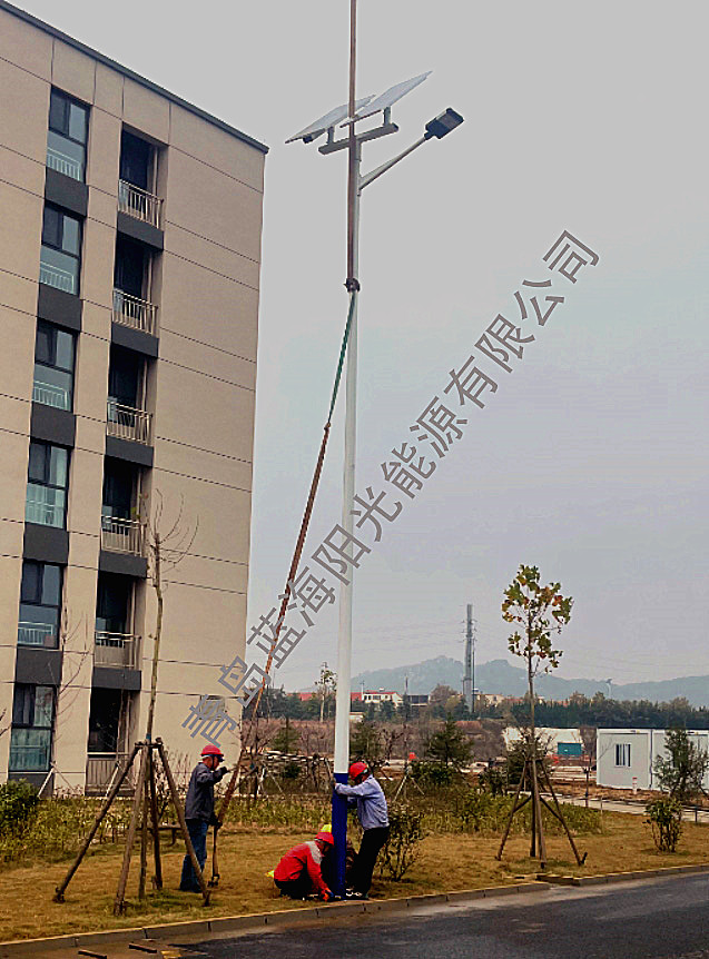 近日,由青島藍海陽光能源有限公司設計、生產、安裝的青島市即墨區田橫街道某央企太陽能LED路燈順得交付使用,該企業為滿足青島地區風力發電提供高科技產品支持的國家重點新建企業,為此廠區亮化要求各種參數高,產品全部采用高級別配件品牌,太陽能LED路燈高度為10米,光伏組件為晶科硅片、鋰電池為億緯電芯柱、控制器為普天品牌、LED芯片為飛利浦品牌,燈桿采用熱鍍鋅噴塑,保證十年不會生銹,太陽能路燈整體質保五年。