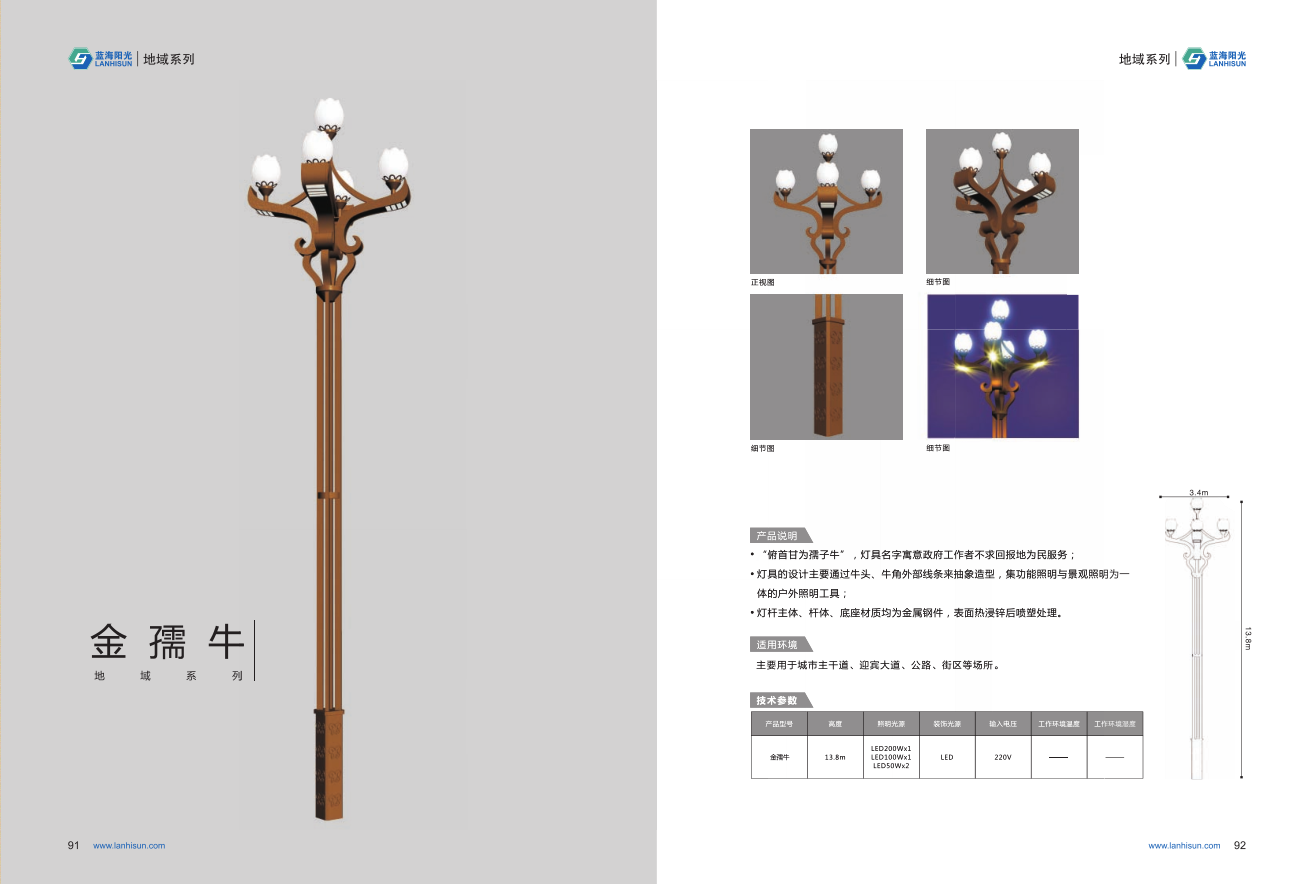 1、高度為6-16米; 2、花葉光源為4組LED光源,色溫2500-6500K,其余光源為LED裝飾光源,每個光源功率為30-60W; 3、LED驅(qū)動電源壽命可達五年; 4、整體熱鍍鋅噴塑,保證燈桿15年不生銹; 5、可以根據(jù)使用地區(qū)的地域文化、產(chǎn)業(yè)特點等進行文化定制;