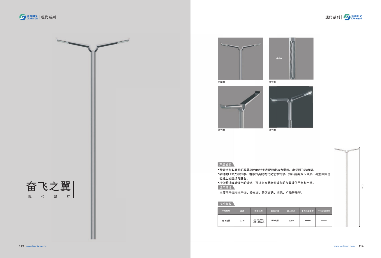 1、高度為6-16米; 2、光源為2組LED光源,色溫2500-6500K,每個光源功率為60-300W; 3、LED驅(qū)動電源壽命可達(dá)五年; 4、整體熱鍍鋅噴塑,保證燈桿15年不生銹; 5、可以根據(jù)使用地區(qū)的地域文化、產(chǎn)業(yè)特點等進(jìn)行文化定制;